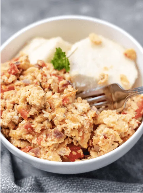 Your choice of a side: Boiled yam, savoury Egg Sauce, hearty Fish Stew