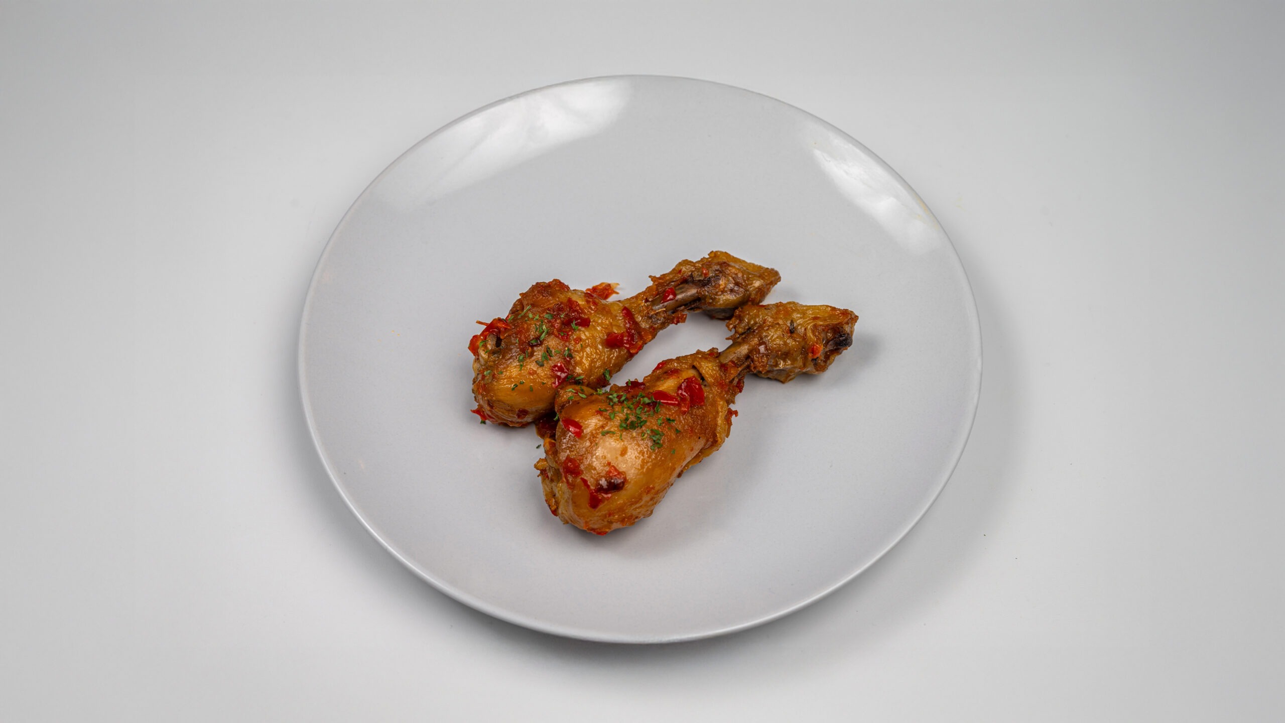 A classic, perfectly seasoned chicken drumstick, ready to enjoy.