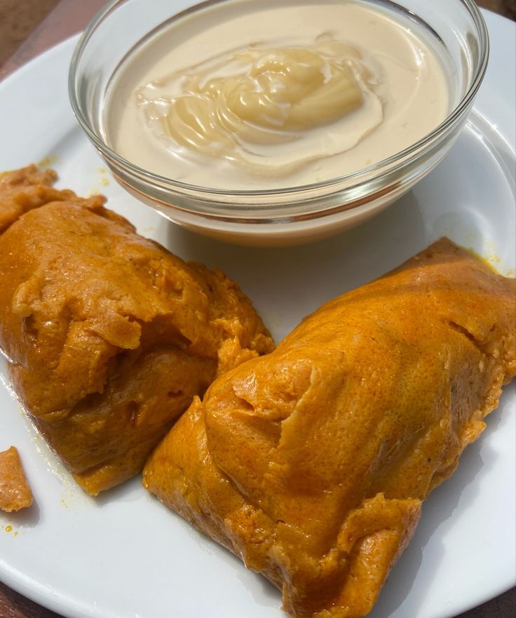Two portions of steamed Moi Moi (bean pudding) paired with smooth Pap.